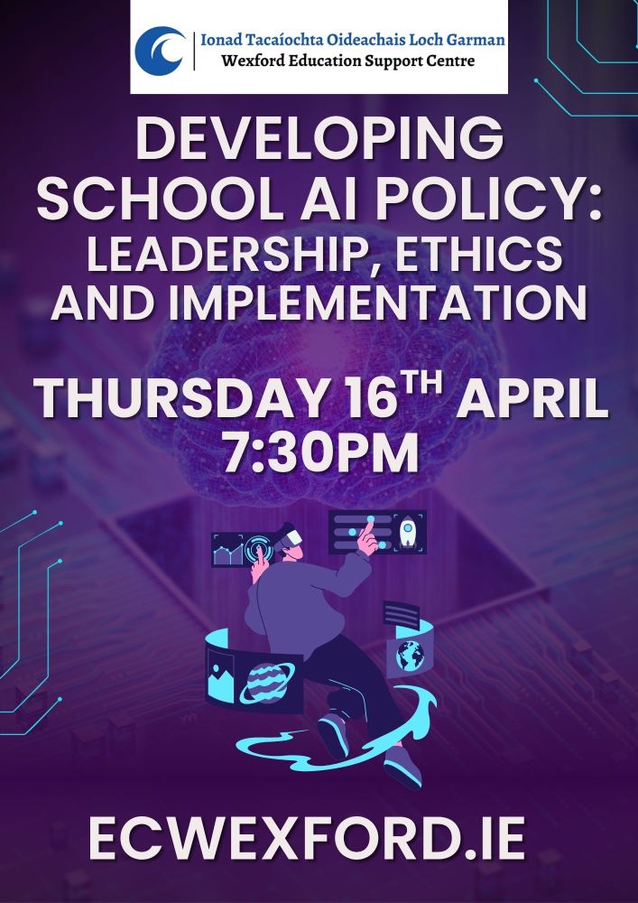 Please Register Here - https://www.ecwexford.ie/cpd-courses/post-primary-courses/5820-developing-school-ai-policy-leadership-ethics-and-implementation.html